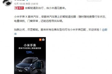 3月16日音讯,今天@小米穿戴 官方微博发布音讯称,小米手表将与蔚来轿车协作,支撑长途遥控蔚来一切在售车型。据官方介绍,小米