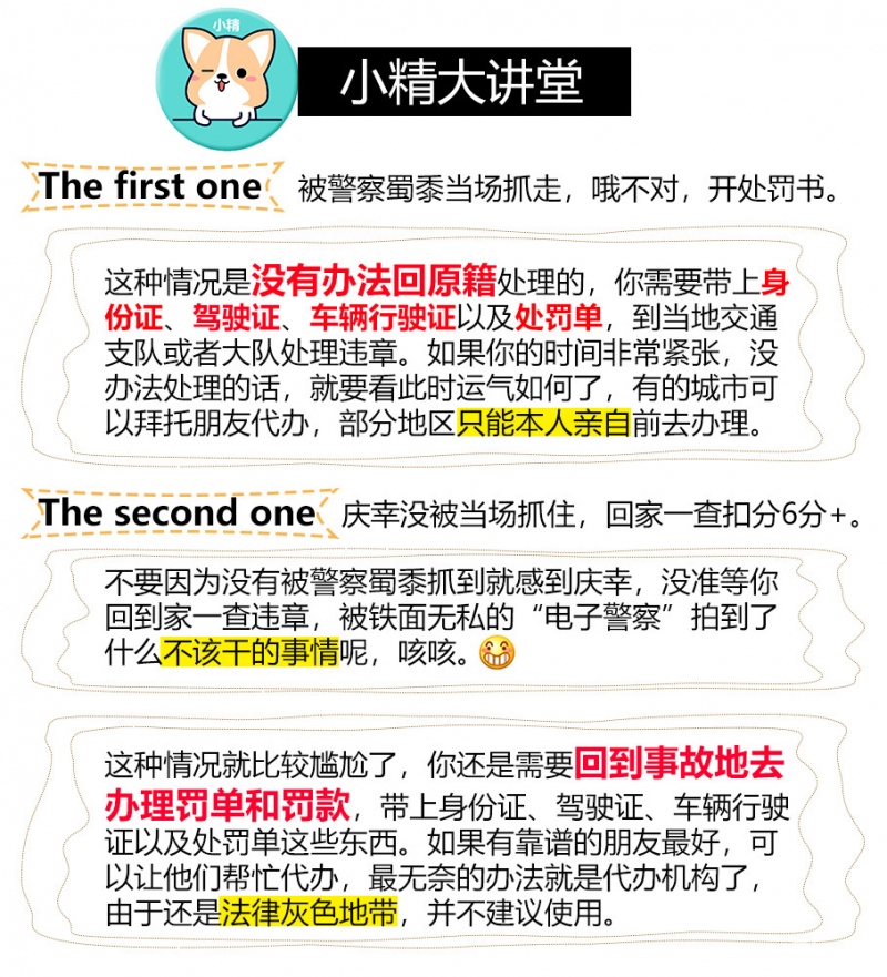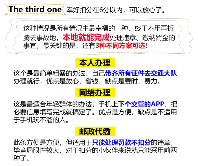 2.注意滞纳金。查清违章后要及时处理,不然超过15日就会产生滞纳金,还有的可以在本地处理的违章,不得不再回到事故地处理。