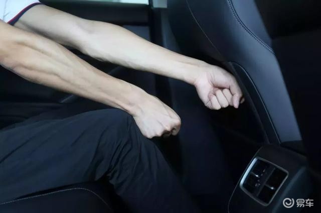 乘坐空间方面,前排头部空间三指,后排腿部空间一拳四指,头部两指,后排中央扶手没有任何阻尼感,水杯架盖板塑料感太强,质感不足。