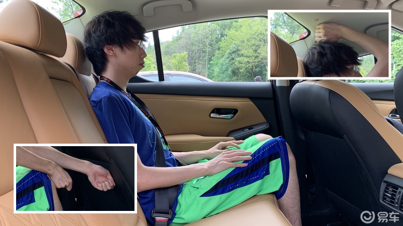 不过,轴距最长并不意味着全新轩逸具备力压群雄的后排空间表现。当我(173cm)按照自己的驾驶习惯调整好前排座椅后,第二排的腿部空间将近3拳,头部空间1拳。