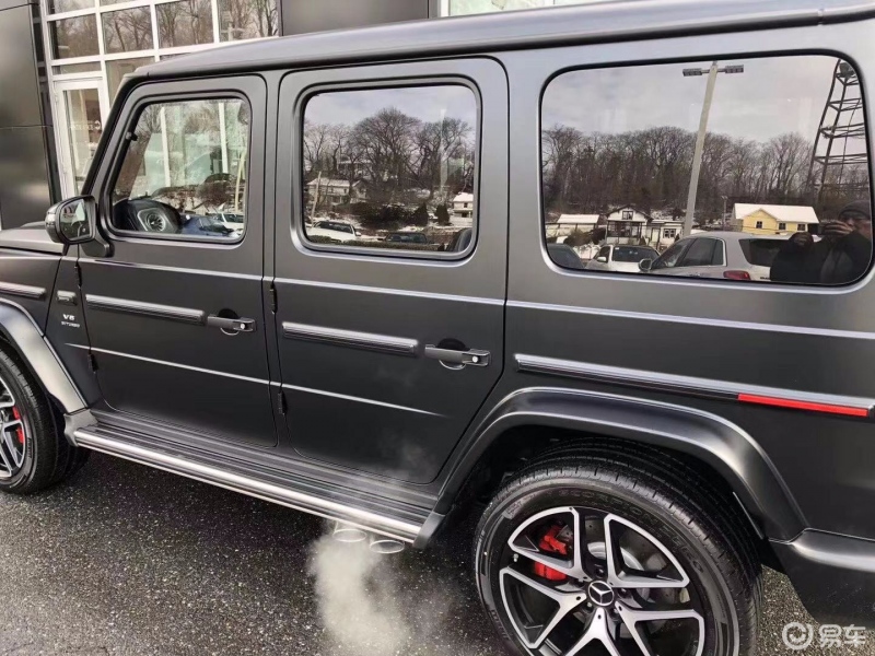 19款奔驰【AMG G63】新车简介奔驰G63 AMG 它就像一个铁箱子,没有多余的弧度、没有任何曲线,眼光所及满是平直锋利的线条,就连车顶上的导雨沟槽,也是沿着车顶周围一圈,分外焊接上去的金属槽,车门搭钮更是绝不虚心,硬挺挺地屹立在门缝之外,外凸的轮拱、造型如同倒梯形的引擎盖。