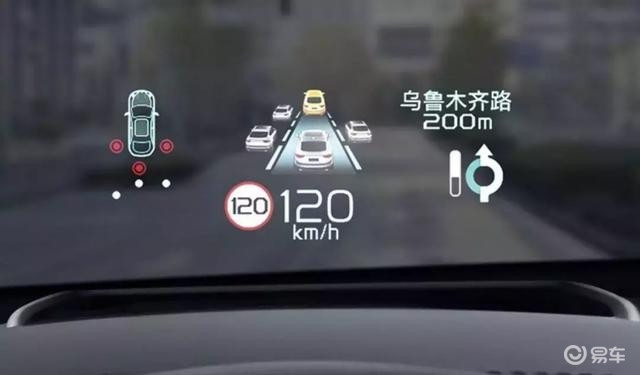 HUD抬头显示器,不仅集成了导航、车道以及雷达探测显示,而且是少数具备全彩的车型。