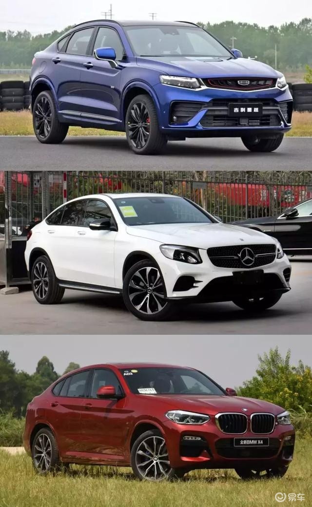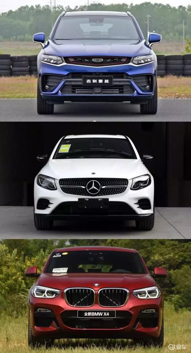 我们直接上图片对比,因为星越是轿跑SUV的定位,豪华品牌里50万级的轿跑SUV只有宝马X4和奔驰GLCcoupe。