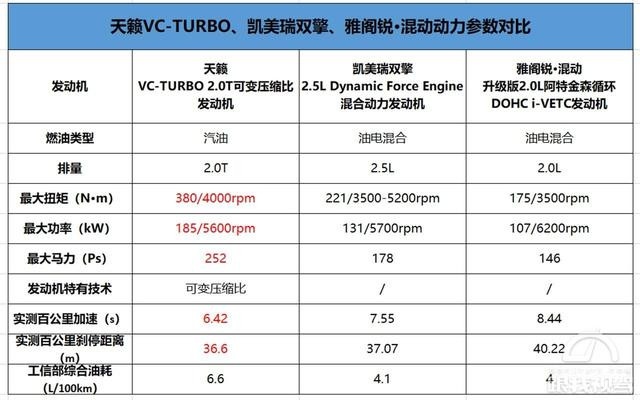 首先我们能够发现,对比车型都是对手油电混合车型,除了油耗方面略高一点之外,其他部分可以说全部超越对手,不论是在功率、扭矩、加速度、还是刹车性能上,都全面碾压,并且,具我所了解的,电混车型因为拥有纯电续航里程的原因,能够在工信部做油耗考核时将综合油耗压得很低。所以在日常使用中,真正的油耗表现并没有所标识的如此夸张。并且在高原油耗测试下,天籁也创造出了极低的油耗水平不是吗?