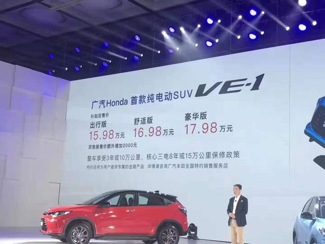 10月21日,广汽本田旗下新款VE-1正式上市,补助后指导价15.98—17.98万,共有3款车型可选。新车定位为小型SUV,其NEDC续航路程晋级为401km。
