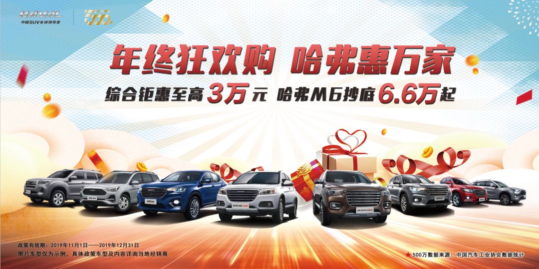年终将近,车市迎来新一轮购车热潮。我国SUV榜首品牌、SUV销量冠军——哈弗,推出“年终狂欢购 哈弗惠万家”促销活动,以肯定高力度钜惠方针,领跑年底车市争夺战。