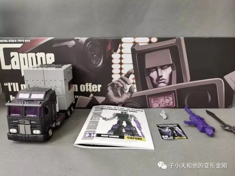 外包方面DX9选用的是硬纸板的包装,内部有两层吸塑式内包,玩具的本体就保存在里边。值得一提的是,这次轿车大师的外包风格是向经典老电影《教父》做的问候,和前两款成员冲击和鲁莽的GTA风格彻底不相同。内容物方面,除了玩具的本体之外,还有一张小人物卡,一本风格极端相似官方MP说明书款式的说明书,一把大剑,一把大枪还有一个合体用的配件。(飞天虎的配件有一把昆虫枪和一把巨剑,这儿不好咱们进行展现)