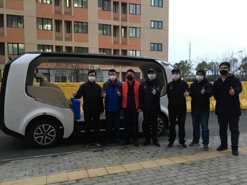 为更好地服务新冠肺炎疫情防疫工作,以Sharing-VAN无人驾驶观光车为基础平台,临时抗疫服务小组对车辆进行了无人驾驶、5G云控等方面的优化改装,同时加装16L大容量全自动消毒喷雾器,以实现观察区内高危道路的全程无人驾驶消毒作业。