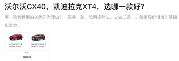 近来咱们在一个轿车类问答网站中发现这么一条问题:沃尔沃CX40和凯迪拉克XT4该怎么样挑选?尽管题主罗列的都是这两款车型的入门版,但是沃尔沃和凯迪拉克的这两款品牌在国内轿车市场都归于二线奢华品牌,且跟着国内奢华品牌的轿车市场之间的竞赛越来越剧烈,所以在价格方面相对咱们了解的干流轿车品牌如:群众、丰田、本田等,都有着极具性价比的市场竞赛力。