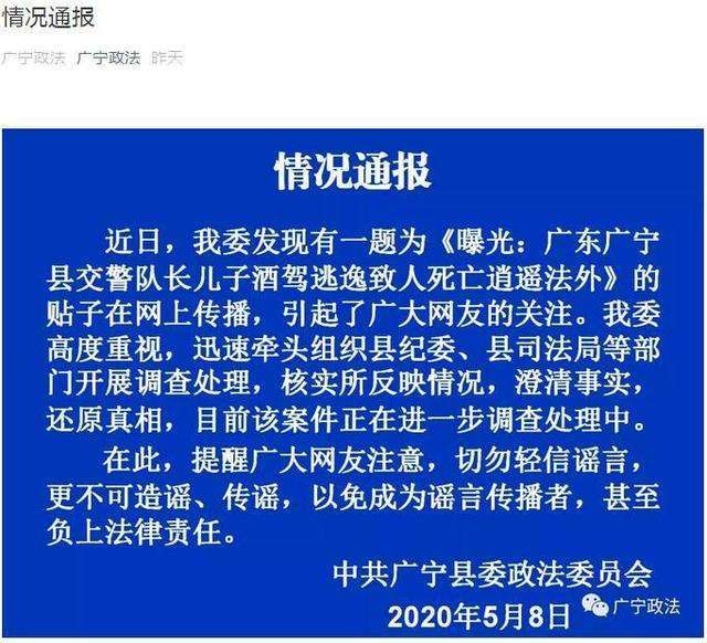 日前,针对引发言论热议的交警大队中队长之子交通闯祸逃逸后不申述事情,广东省广宁县当地官方屡次通报案子状况。依据通报,涉事人员梁某勇确系广宁县公安交警大队归纳中队长之子,其在2019年1月的交通闯祸案中“承当事端悉数职责”,因“过后活跃补偿”并获被害人老公出具的体谅书,而取得检方不申述。