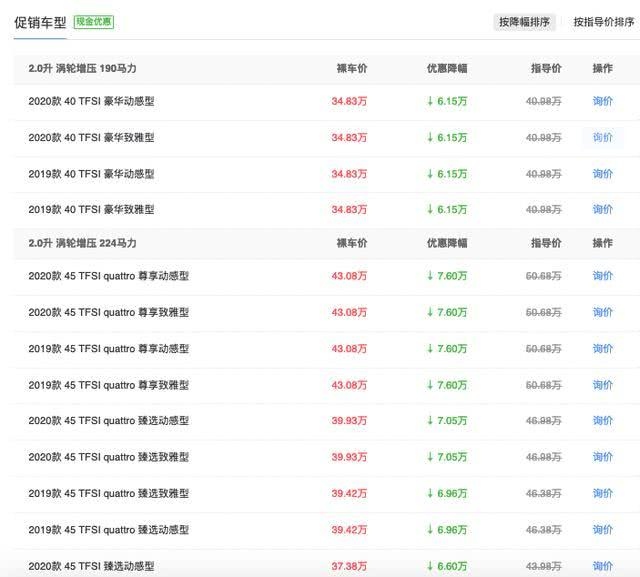 从前的奥迪A6L,无疑是奢华中大型商场的标杆。较早进入中国商场的它,在当年深受政府单位喜欢,成功地建立起了自己的官车形象,是身份与权贵的标志,销量也一向居于前哨。不过跟着奔跑E级以及宝马5系的发力,奥迪A6L逐渐失去了自己的位置。在去年度里边,A6L年销量13万辆,次于E级与5系,特别是奔跑E级,销量达到了15万多。不过作为从前的等级老迈,奥迪A6L怎么会甘愿自己的位置被替代。为了拯救销量,在终端A6L的优惠十分大,到现在其价格现已降至35万内,这也包含上个月才上市的2020款车型。而这一战略的商场反应也不错,在刚刚曩昔的4月份,奥迪A6L单月销量达到了13881台,超过了宝马5系与奔跑E级,前进很明显。