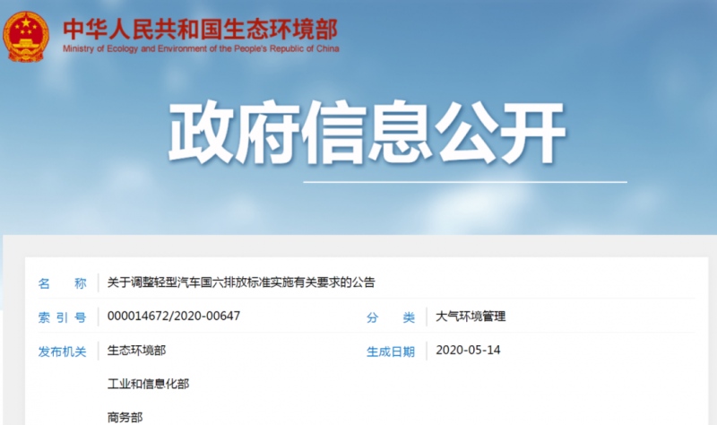 15日,生态环境部、工业和信息化部、商务部、海关总署四部分发布布告,调整轻型轿车国六排放规范施行有关事项,清晰了轻型轿车国六排放规范颗粒物数量(PN限值)渡期截止日期,由2020年7月1日前调整为2021年1月1日前;一起对2020年7月1日前出产的进口国五轿车,添加6个月出售过渡期,在2021年1月1日前答应在全国没有施行国六排放规范的区域挂号。