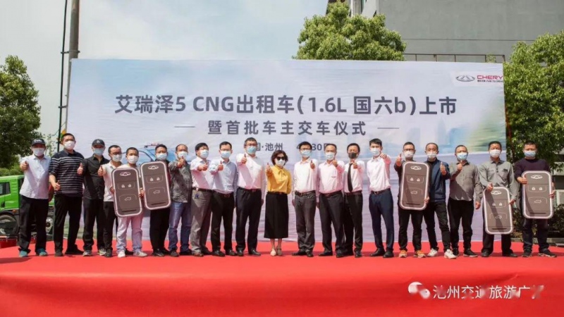 近 日,国内首款6万 级契合国六b排放规范的 艾瑞泽5 CNG(1.6L 国六b)租借车上市暨第一批交车典礼 在池州正式举办。奇瑞轿车营销公司副总经理张炳凤到会了活动,并向池州市租借需求方代表交付了第一批30台 艾瑞泽5 CNG租借车。