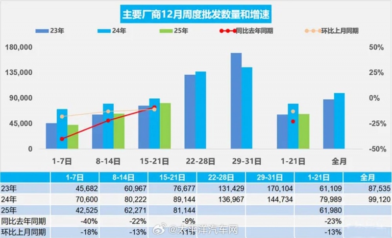 乘用车零售:130.0万辆,同比去年12月同期 下降19%,较上月同期增长5%。